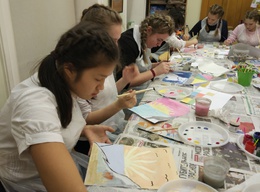 29 ноября музей изобразительного искусства имени Пушкина посетили ребята из Берсеневской школы-интерната Московской области и ребята, которые занимаются в московском Центре Лечебной Педагогики. Работали тремя группами: живопись, керамика и эстамп. Живописцы, например, под руководством Марии Григорьевны Дрезниной ознакомились с творчеством импрессионистов и затем рисовали морской пейзаж в этом стиле.