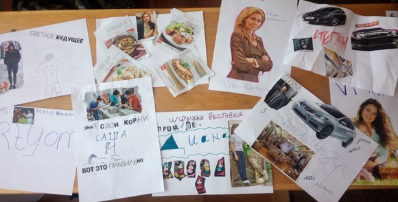 После встречи ребята, которые приезжали к нам в Москву на профориентационную программу, отправились делать уроки, а с ребятами помладше мы поговорили о разнообразии профессий и важности выбора своей профессии. Фантазировали, какие профессии будут нужны через 10 лет и делали коллаж «Я в профессии».