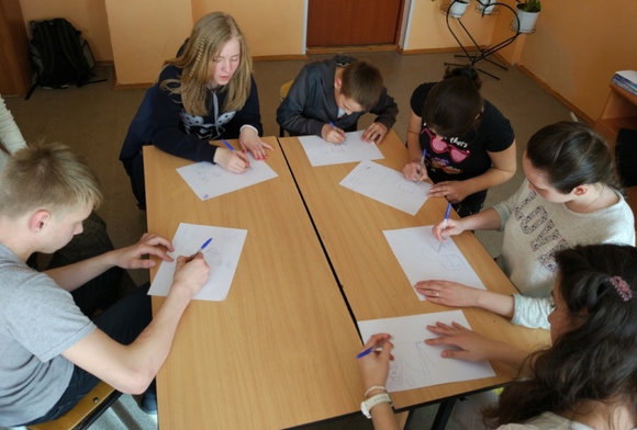 Много говорили с ребятами о значении различных знаков, которые мы даем своим телом собеседнику при общении. Обсудили жесты человека, когда он обманывает, агрессивно настроен или открыт и дружелюбен. Играли в разные психологические игры, где одним из правил было молчание, это далось ребятам с большим трудом. Веселее всего оказались упражнения, в которых ребята общались рисунками без слов. Труднее всего было упражнение про общение в парах. Сделать это решились только Саша, Вика, Сережа и Андрей. Как выяснилось, общаться гораздо легче, когда оба участника находятся в равноправной и открытой позиции друг к другу.