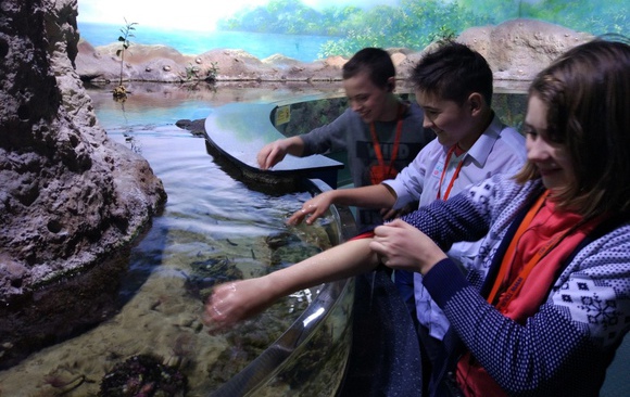 Во второй день ребят ждала увлекательная экскурсия в Москвариуме – увидели дельфинов и белуху, кормление байкальских нерп, потрогали скатов и мант.