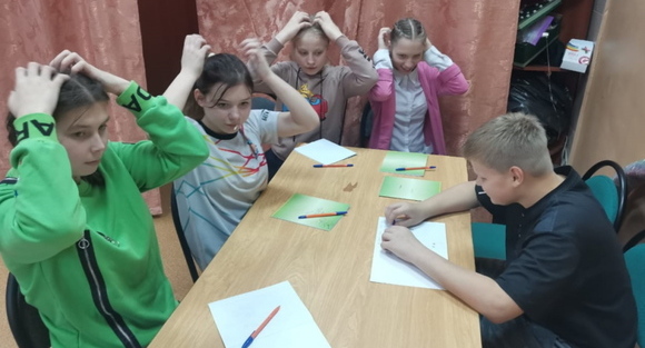 Очное двухдневное занятие прошло в Кирове – продолжили занятия на тему эмоций. В первый день изучали страх. Участники рисовали каждый свой страх – если наделить его образом, то можно трансформировать страх по своему желанию, как хочется. Чем все с удовольствием и занялись. Фантазируя, в темной комнате можно включить свет, на высоте можно быть с парашютом или страховкой, а пожар можно погасить дождем. А впоследствии можно и избавиться от страха. Ребята сделали маски героев, которые не боятся ничего.