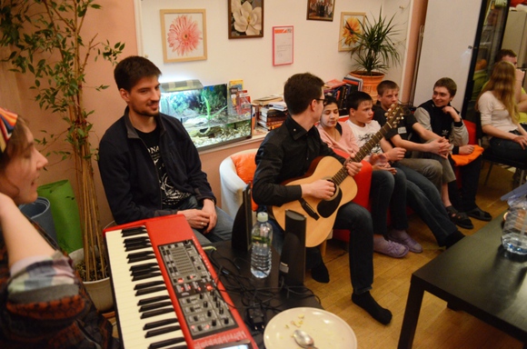 Вечером теперь уже к нам в хостел пришли замечательные гости. Это спортсмен Александр, принадлежащий к уличной субкультуре WorkOut. Он рассказал ребятам о преимуществах здорового образа жизни и продемонстрировал базовые упражнения для ежедневных тренировок. Еще одним гостем вечера стала удивительно талантливая Татьяна Буряшина. У Тани необычная и интересная профессия – концертмейстер, музыкально сопровождающий вокалистов во время выступлений. Все вместе мы окунулись в чарующий мир музыки. Сколько песен вспомнили ребята! Мы бы могли пропеть так и до утра!