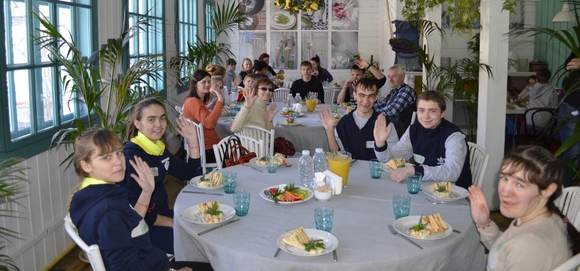 Утро второго дня программы началось с вкусного завтрака, приготовленного активными ребятами вместе с наставниками. Атмосфера располагала к общению: более опытные кулинары давали советы и указания новичкам, все вместе сервировали стол для себя и старших. Затем мы снова отправились в большой город!