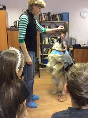 Нас было много (и детей, и родителей). Мы хорошо запомнили терпеливых, смелых, готовых выдержать столько любопытства, внимания, ласки, пробных команд от детей, шума и суеты собак. Каждый раз мы проводим знакомство с собаками, внимательно слушаем рассказ хозяина о судьбе питомца, особенностях характера. Поскольку судьбы наших друзей уникальны, это никогда не скучно слушать, даже если собака приходит к нам в гости уже не первый раз. На первом занятии с младшей группой мы смотрели мультики про собак, мы инсценировали мультики, в каждой сценке принимала участие и собака со специально подобранной для нее ролью. Нашим родителям «не хватило собаки», и они поразили нас своей изобретательностью, художественными и театральными способностями – их постановка была самой многолюдной. На втором занятии с младшими подростками мы устроили подробный опрос хозяев с заполнением анкеты про каждую собаку и презентацией впоследствии. Программа получилась насыщенной, трогательной, все участники встречи получили много эмоций, уроков и впечатлений - уходили уставшие и довольные. Благодарим наших партнеров за уникальность их деятельности, за эффективность и терапевтичность таких встреч, за активное участие хозяев, детей и родителей, за искренность, радость и впечатления! Дарья, сотрудник Ресурсного центра |