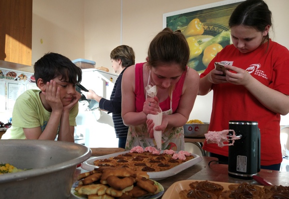 Вернувшись, собрали всех желающих играть в игру «Мафия». Оказалось, что не все знали эту игру, и с каждым коном мы вновь и вновь рассказывали правила для тех, кто присоединялся. Играли бы еще, но наступил обед, а после начали готовить бисквитный торт!