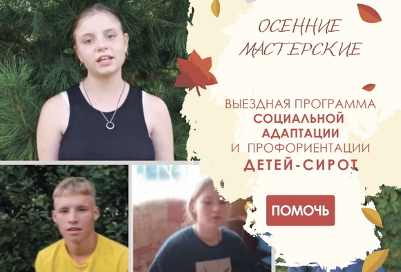 Друзья! Мы рады поделиться с вами важной новостью о сборе на выездную программу социальной адаптации детей-сирот «Осенние мастерские». Для реализации этого проекта нам необходимо собрать 350 000 рублей. В программе примут участие 12 детей-сирот из трех региональных учреждений: центр помощи детям-сиротам в г. Киров, школа-интернат №1 г. Нижний Новгород и Павловский санаторный детский дом. Для многих из них это будет первый опыт выхода за пределы привычного окружения и знакомство с миром профессий, о которых они мечтают.