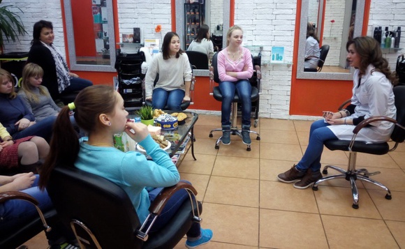 А дальше девочки пошли изучать профессии в Новый Салон красоты сети «Оранжевая империя». Им рассказали про профессии визажиста, стилиста, парикмахера и мастера по бодиарту.