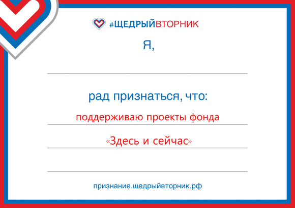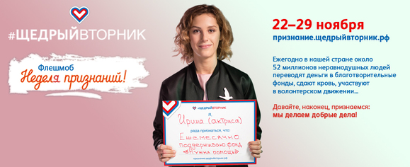 А еще вы можете поучаствовать в «Неделе признаний». На неделе с 22 по 29 ноября давайте признаваться, что мы делаем добрые дела! Благодаря этому мы увидим, как много тех, кому не все равно. Говоря о своих добрых делах, мы можем вдохновить других!