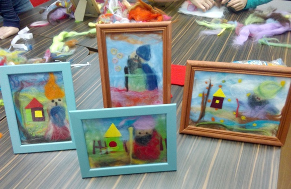 С октября в Ресурсном центре работает Творческая мастерская, на которой арт-терапевт центра Екатерина Фиалкова учит детей и взрослых делать картины, бусинки и мячи из непряденой шерсти.