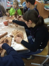 На следующий день опять пошли в Зелёную школу. В этот раз мальчики Лёша, Витя, Макс, Артём, Коля, Толя и некоторые девочки Настя, Ира, Оля, Василиса делали поделки из дерева в столярной мастерской. Получились прекрасные ящички с крышкой. А остальные девочки пошли в ЦДХ на фестиваль Российского географического общества, где видели скелет мамонта, послушали горловое пение и участвовали в викторине. А Вика, Оксана и Анжела придумывали имя леопарду.