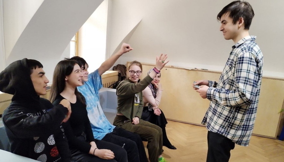 Утром встречали сразу два поезда – один из Нижнего Новгорода, второй из Кирова. Доехали с ребятами до хостела, подкрепились и отправились на встречу с большим миром и волонтерами – студентами 3 и 4 курсов кафедры психологии и педагогики РУДН, которые сопровождали детей всю программу. Их задача была подсказывать, направлять, поощрять проявлять инициативу и учиться помогать без вреда.