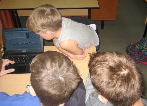 7 января начали с монтажа. Никита Н., Максим и Толик зачаровано смотрели, как раздельные кадры становились единым фрагментом фильма. Никто из ребят не решился монтировать фильм, но они выбирали удачные дубли, советовали, какие и как накладывать видеоэффекты. Музыку подобрали очень быстро.