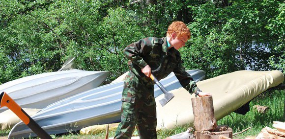 Второй день программы был очень солнечным и теплым. После завтрака ходили валить лес для семинара колки-рубки. Весь мужской состав участников с удовольствием помогал если не рубить деревья, то таскать их. Теперь лагерь дровами обеспечен! Семинар по колке-рубке шел до обеда – все учились рубить дрова, и не только мальчики, девочки тоже.