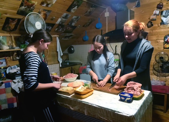 А на обед у нас были борщ и салат оливье. Дежурные повара Лиза, Даша и Алина копошились на кухне, выгоняли мешающих и приветствовали помогающих. Свободные в этот момент ребята играли в настольные игры.