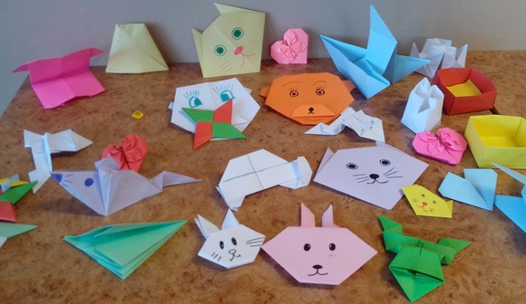Впитав мудрость древних мастеров, пошли делать оригами. В руках у ребят стали появляться голуби, лягушки, вертушки, корабли, коробочки, сердечки и много чего ещё.