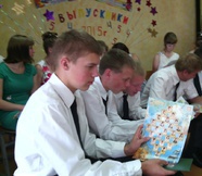 Волонтеры группы «Апельсин» побывали на выпускном у новогуровских ребят, с которыми знакомы уже 8 лет, и по традиции, подарили выпускникам фотографии.