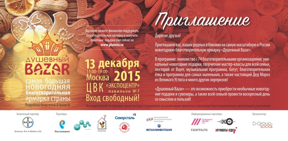 Вы можете помочь «Душевному Bazar'у» стать ещё ярче на https://planeta.ru/campaigns/dbazar