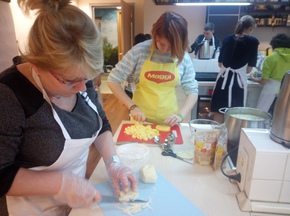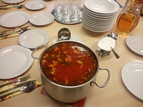 После начали кулинарную битву! Команды получили задания и отправились на кухню, где под руководством поваров и волонтёров компании ребята приготовили вкуснейший обед, который затем был дружно и с аппетитом съеден весь до крошки!