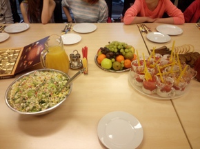 После дороги ребят ждали вкусные угощения и просмотр весёлого фильма о правильном питании. А затем началась увлекательная викторина об истории и особенностях кухни разных стран и русской народной кухни. Ребята узнали, что такое «кулебяка», как в старину готовили кисель и много других интересных фактов.
