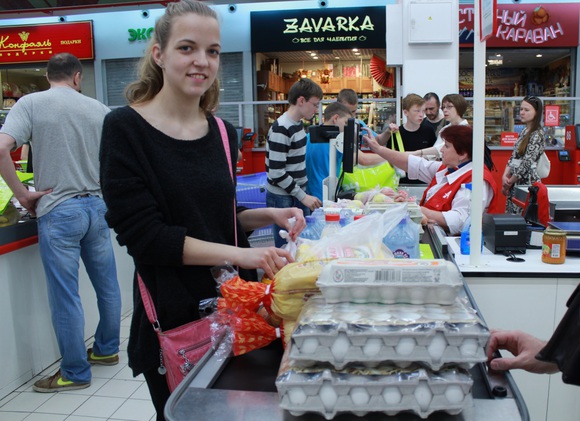 В Ашане участники применили полученные знания на практике. Они разбились на 5 команд по 4 человека. В распоряжении каждой команды были 3 250 рублей. Нужно было составить меню завтрака на 30 человек (обязательные блюда: блинчики, что-то из яиц и каша, йогурт или хлопья), правильно рассчитать ингредиенты, придумать перекус, который можно взять с собой, и купить все необходимые продукты, уложившись в бюджет. Участникам помогали более опытные в бытовых вопросах волонтеры из компании Cisco.