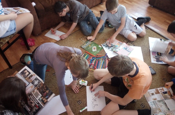 После встречи ребята, которые приезжали к нам в Москву на профориентационную программу, отправились делать уроки, а с ребятами помладше мы поговорили о разнообразии профессий и важности выбора своей профессии. Фантазировали, какие профессии будут нужны через 10 лет и делали коллаж «Я в профессии».