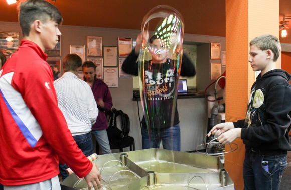 На первое мероприятие поехали в парк Сокольники, и ребята снова сами искали дорогу. В Детском научном центре Иннопарк у ребят была увлекательная экскурсия, на которой показали способы получения электричества, рассказали про то, что все цвета получаются из трех основных, дали сделать гигантские мыльные пузыри. Ребята все крутили, нажимали и исследовали. После экскурсии был запланирован воркшоп, и до последнего момента мы не знали, что там будет. Это был сюрприз! Ребята сделали своими руками настоящие калейдоскопы, что очень вписывается в название нашей программы и может смело быть ее символом. От всей души благодарим компанию «Mediascope» за организацию этого прекрасного мероприятия для участников программы!