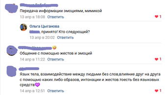 Дистанционно работать с ребятами – дело нелегкое: у них не всегда есть интернет, иногда трудно получается выражать свои мысли в комментариях. Но несмотря на трудности мы продолжаем общаться с ребятами дистанционно. К тому же теперь это можно делать одновременно и с нижегородцами, и с тужинцами. В апреле на занятии цикла «Ступени» разбирали с участниками тему «Невербальное общение».