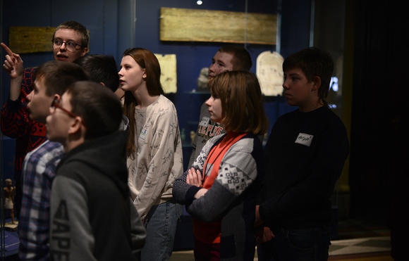 В первый день начали с экскурсии по музею – три группы детей с разными экскурсоводами побывали в залах, посвященных Древнему Египту. А после обеда ребят ждали три мастер-класса: керамика, линогравюра и рисунок – в каждый выезд участники побывают на разных мастер-классах и смогут познакомиться с разными техниками.