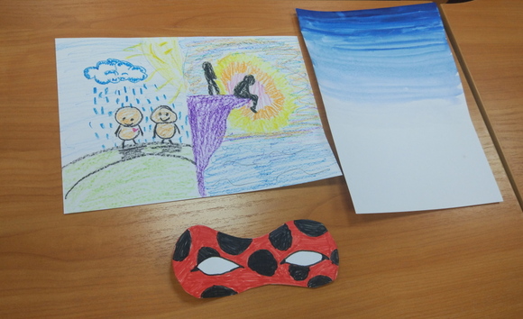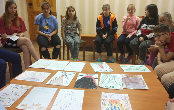 Очное двухдневное занятие прошло в Кирове – продолжили занятия на тему эмоций. В первый день изучали страх. Участники рисовали каждый свой страх – если наделить его образом, то можно трансформировать страх по своему желанию, как хочется. Чем все с удовольствием и занялись. Фантазируя, в темной комнате можно включить свет, на высоте можно быть с парашютом или страховкой, а пожар можно погасить дождем. А впоследствии можно и избавиться от страха. Ребята сделали маски героев, которые не боятся ничего.