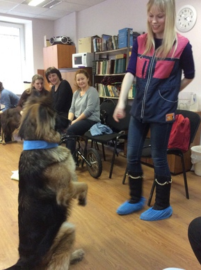 Нас было много (и детей, и родителей). Мы хорошо запомнили терпеливых, смелых, готовых выдержать столько любопытства, внимания, ласки, пробных команд от детей, шума и суеты собак. Каждый раз мы проводим знакомство с собаками, внимательно слушаем рассказ хозяина о судьбе питомца, особенностях характера. Поскольку судьбы наших друзей уникальны, это никогда не скучно слушать, даже если собака приходит к нам в гости уже не первый раз. На первом занятии с младшей группой мы смотрели мультики про собак, мы инсценировали мультики, в каждой сценке принимала участие и собака со специально подобранной для нее ролью. Нашим родителям «не хватило собаки», и они поразили нас своей изобретательностью, художественными и театральными способностями – их постановка была самой многолюдной. На втором занятии с младшими подростками мы устроили подробный опрос хозяев с заполнением анкеты про каждую собаку и презентацией впоследствии. Программа получилась насыщенной, трогательной, все участники встречи получили много эмоций, уроков и впечатлений - уходили уставшие и довольные. Благодарим наших партнеров за уникальность их деятельности, за эффективность и терапевтичность таких встреч, за активное участие хозяев, детей и родителей, за искренность, радость и впечатления! Дарья, сотрудник Ресурсного центра |