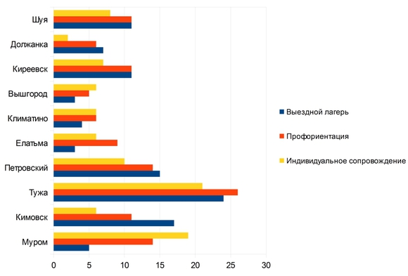 Большинству участников в возрасте от 16 до 18 лет рекомендовано участие в программе «Профориентация» (выпускники), а также выездные каникулярные программы.