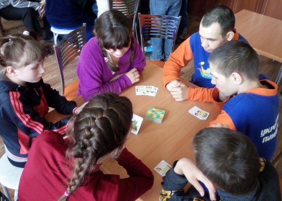 Следующий день мы начали с игр! Ведь в гостях можно не только дарить и получать подарки, не только готовить и есть еду, но и играть в разные игры! Начали играть все вместе в «Пересядьте те, кто...». Затем вспомнили, кто и где живёт, играя в «Вода, воздух, земля, огонь». Делали весёлую зарядку. Вспомнили рзные настольные игры. Помощники Лёши Витя Т., Игорь С., и Алексей В. пошли в магазин за продуктами, а остальные продолжили играть. Изучили и поиграли в игру «Homo sapiens», где нужно очень быстро издавать звуки животных и птиц, что очень всех смешило. Самой шустрой оказалась маленькая Настя. Опять гадали по книге и отгадывали детективные загадки про Глеба Смекалкина.