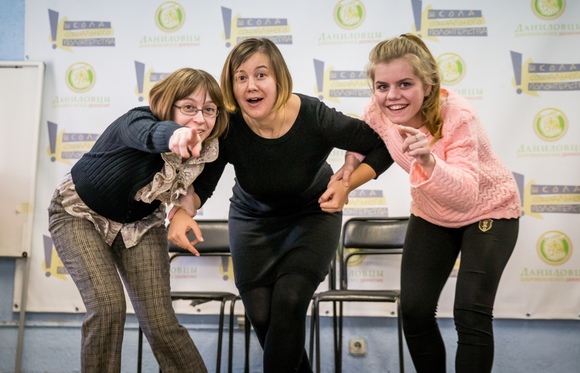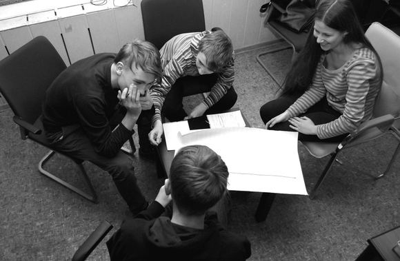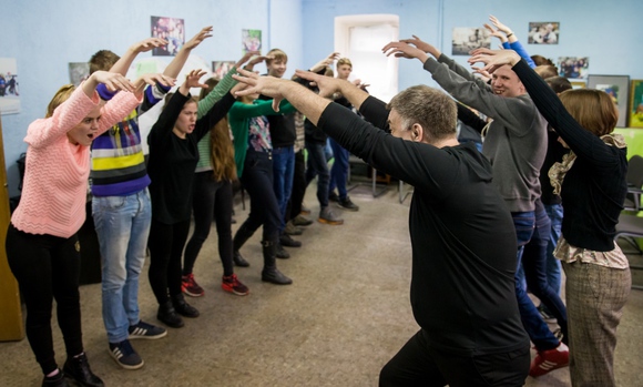 Мы встали с утра позже, чем во все остальные дни. Собрали сумки и пошли на последнее мероприятие. В офисе фонда нас встретили артисты playback театра. Перед выступлением один из артистов Илья рассказал все про этот театр. Затем мы должны были рассказывать актерам, что случилось с нами за эту неделю, а они должны были показать нас, наши чувства и эмоции. Все было очень похожим, они смогли нас изобразить. |