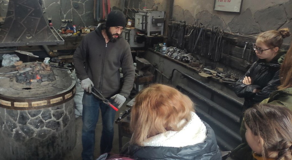 В Первой Кузне все завороженно следили за демонстрацией мастерства и рассказом о кузнечном деле. На примере метательного ножа увидели как кузнец работает с металлами: при нас выковали нож из куска арматуры. После шумных впечатлений и громких историй отправились за вкусным обедом в «Шоколадницу».