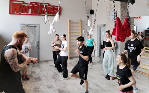 После обеда ребята посетили фитнес-центр World Class. Все смогли от души поскакать, побегать и помахать руками, а заодно узнать, что есть такая крутая профессия – фитнес-тренер. Кажется, многие ею загорелись. Этому здорово способствовал невероятно харизматичный и жизнерадостный тренер.