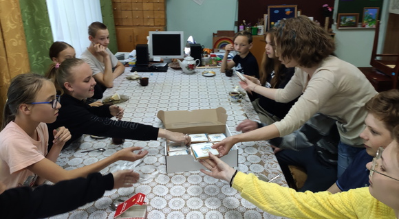 Пересмотрели с желающими фильм, который снимали в Туже 3 года назад, и заметили, как сильно многие выросли. А еще сегодня день рождения Алины, пили праздничный чай с тортом и пряниками.