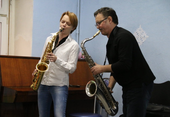 «Сегодня наш день напитал и наполнил волшебный звук саксофона. Вернее, даже двух саксофонов, потому что на встречу с детьми и родителями в наш центр пришли сразу два саксофониста – Вероника Кожухарова и Олег Агеев. Саксофон-альт и саксофон-тенор. Академический саксофон и саксофон в джазе. Новая информация и новое звучание. То, что мы узнавали, и то, что мы слышали, впитывалось и переплеталось.