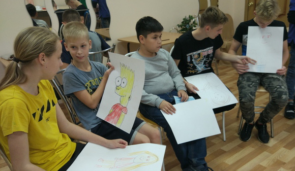 Когда психологи программы Социальной адаптации приезжают с тренингами «Ступени» в гости к ребятам, стараются заниматься тем, что плохо получается онлайн – играют в игры, рисуют и обсуждают автопортреты, сочиняют «нарисованные истории», ищут образы в каракулях.