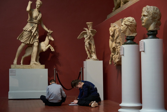 К сожалению, в этот раз участников было меньше: шесть человек заболели (но мы надеемся, скоро поправятся и наверстают упущенное!). Оставшиеся ребята, как и в прошлый раз, работали тремя группами. Участники группы «Живопись» на теоретической части изучали узоры на греческих вазах, а потом декорировали собственную вазу. Группа «Гравюра» изучала, а потом зарисовывала греческих богов – это заняло так много времени, что изготовление гравюры на основе рисунка отложили до следующего занятия. А группа скульпторов лепила из глины птиц. Все без исключения ребята остались довольны.