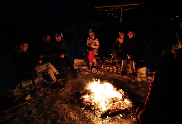 А любители походной романтики собрались у костра. Все кроме Лизы, Полины и Светы вместе с инструкторами и хозяевами дома сидели у костра, пели песни под гитару, вспоминали и обсуждали разные смешные истории из жизни. Получилось очень здорово и душевно! А троица девочек в этот момент наполняла дом музыкой с телефонов. Обратно в дом вернулись к вечернему собранию, наполнив комнату ароматом костра и атмосферой дальних странствий.