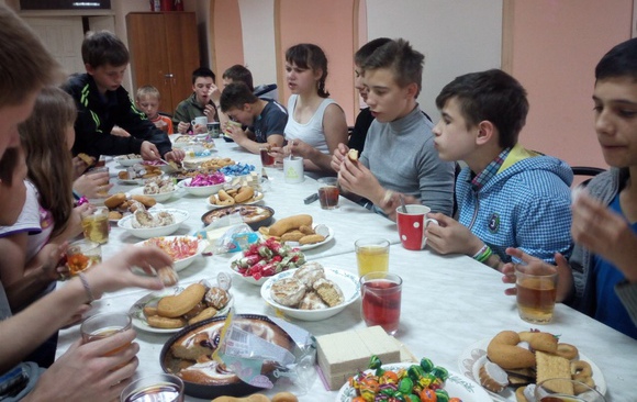 После занятия был чай со сладостями, которые девочки сами выбирали в магазине и накрывали на стол. За чаем долго болтали, и очень бы не хотелось, чтобы наше общение с тужинскими ребятами закончилось вместе с окончанием цикла «Три ДА». Надеемся, нас ждёт ещё много встреч!