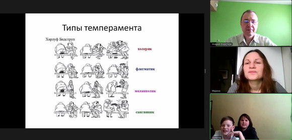 С ребятами из Солотчи начали новую тему и поговорили про темперамент. Успели обсудить, что такое темперамент, какие типы темперамента бывают и как их различать. На примере «Смешариков» разобрались, почему Крош – холерик, а Ежик – флегматик, увидели в Бараше меланхолика, а в Нюше – сангвиника. Потренировались определять тип темперамента у героев мультфильмов и сказок. А в конце ребята с помощью рисунка показали свой тип темперамента. Занятие получилось веселым и познавательным.