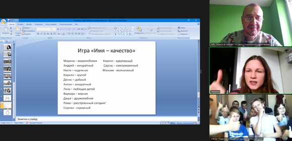 11 сентября начались занятия цикла «Ступени» в Павловском санаторном детском доме Нижегородской области. Первые шаги были дистанционными – психологи фонда провели онлайн встречу с воспитанниками, начали, конечно, со знакомства: узнали, что в Павлово живут очень творческие и одновременно спортивные ребята, которые и куклу шить умеют, и на барабанах играют, и настоящие шедевры из дерева могут вырезать! А в перерывах любят забросить мяч в кольцо или отработать приемы самообороны. Ждем не дождемся личной встречи, чтобы познакомиться вживую с такими талантливыми детьми!