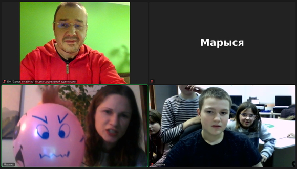 Если на наших предыдущих встречах мы с ребятами из Солотчинской школы-интерната радовались, проявляли симпатию и выражали любовь, то на четвертом занятии решили от души позлиться! Обсуждали, в каких случаях может появиться злость, и что в этот момент происходит с человеком. Даже провели эксперимент: на примере воздушного шарика увидели, что, если позволять злости копиться, то можно «лопнуть» от напряжения. Выяснили, что ребята отлично знают, как можно справиться со своими негативными эмоциями, у каждого есть свой секретный способ. Но несколько новых приемов управления гневом все же освоили!