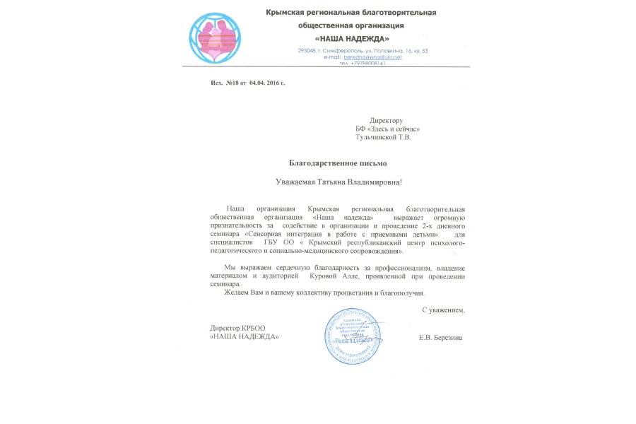 Крымская региональная благотворительная общественная организация «Наша надежда»