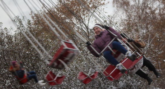 Размявшись, пошли на аттракционы, которые работали даже в непогоду. Здесь помимо удовольствия ребята получили дозу адреналина. Андрей качался на огромных качелях аж три раза и говорил, что у него в «животе щекотно».