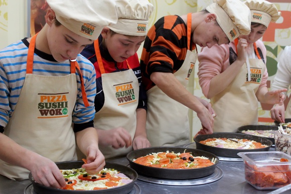Ребята устроились в уютном хостеле НМ, вместе с ведущими обсудили правила и расписание на ближайшую неделю. И отправились на первый мастер-класс – учиться готовить пиццу. Узнали, из каких ингредиентов она состоит, научились раскатывать тесто, готовить основу и украшать пиццу. В результате каждый сделал неповторимую пиццу. Витя назвал свою поэтически – «Последний осенний цветок». Первым закончил Андрей и сразу всех угостил. Потом ребята угощали друг друга, и даже еще на ужин осталось! Спасибо поварам «Пицца Суши Вок» за интересный мастер-класс! Теперь многие хотят научить своих друзей готовить пиццу.
