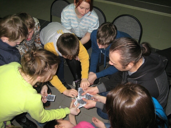 15 февраля начали с беседы о том, во что можно играть с гостями. Ребята долго спали и потихоньку подтягивались в зал. Первыми пришли Стас и Кристина, затем Люба и мы начали думать про игры с гостями.