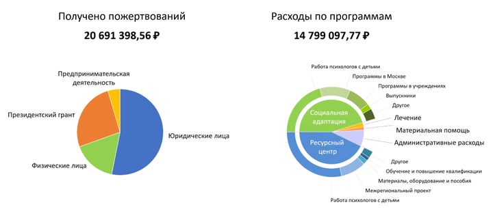 В 2018 году материальная помощь была оказана на сумму 254 001,04 рублей. Также значительная материальная помощь была оказана нашими дарителями напрямую.